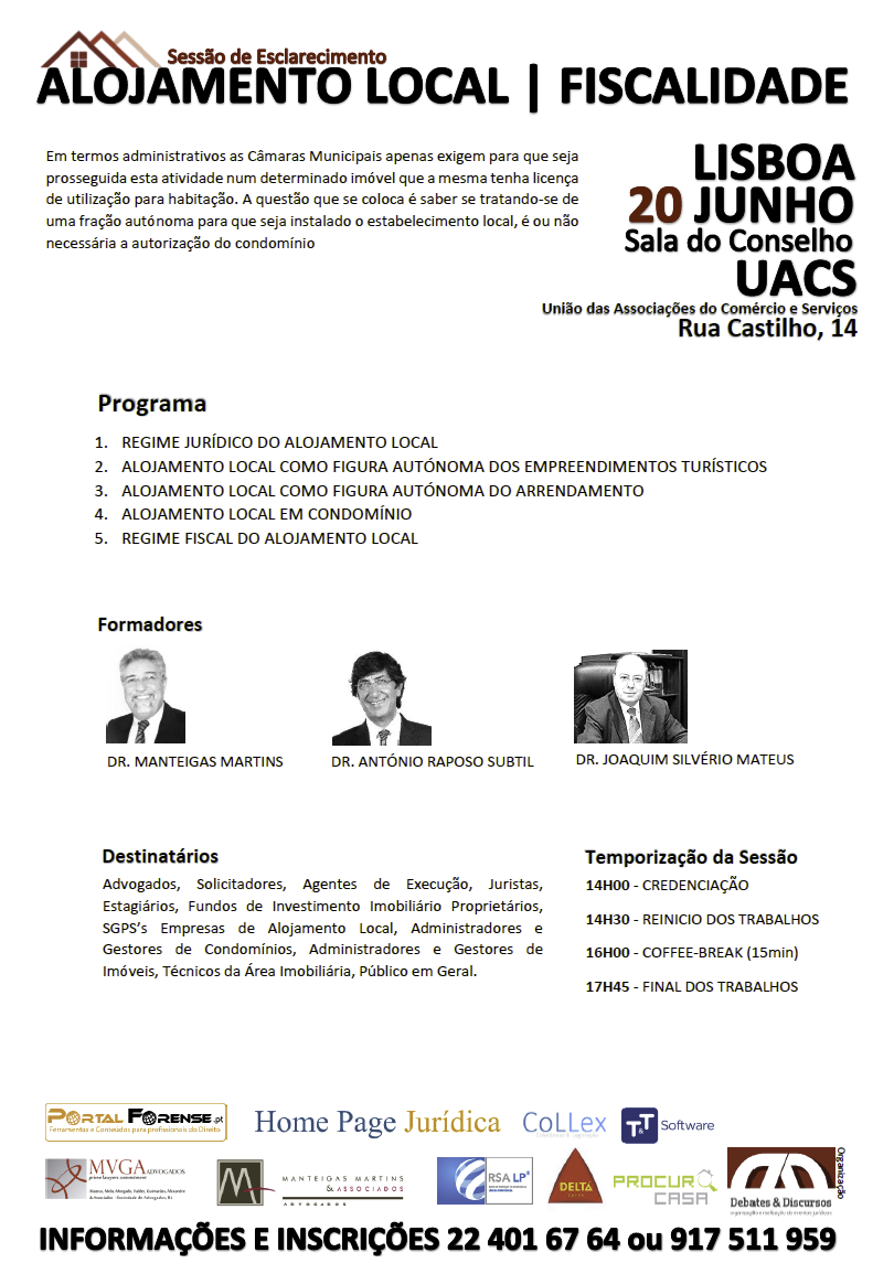 Sessão de Esclarecimento "ALOJAMENTO LOCAL | FISCALIDADE" Dia 20 de Junho - Lisboa