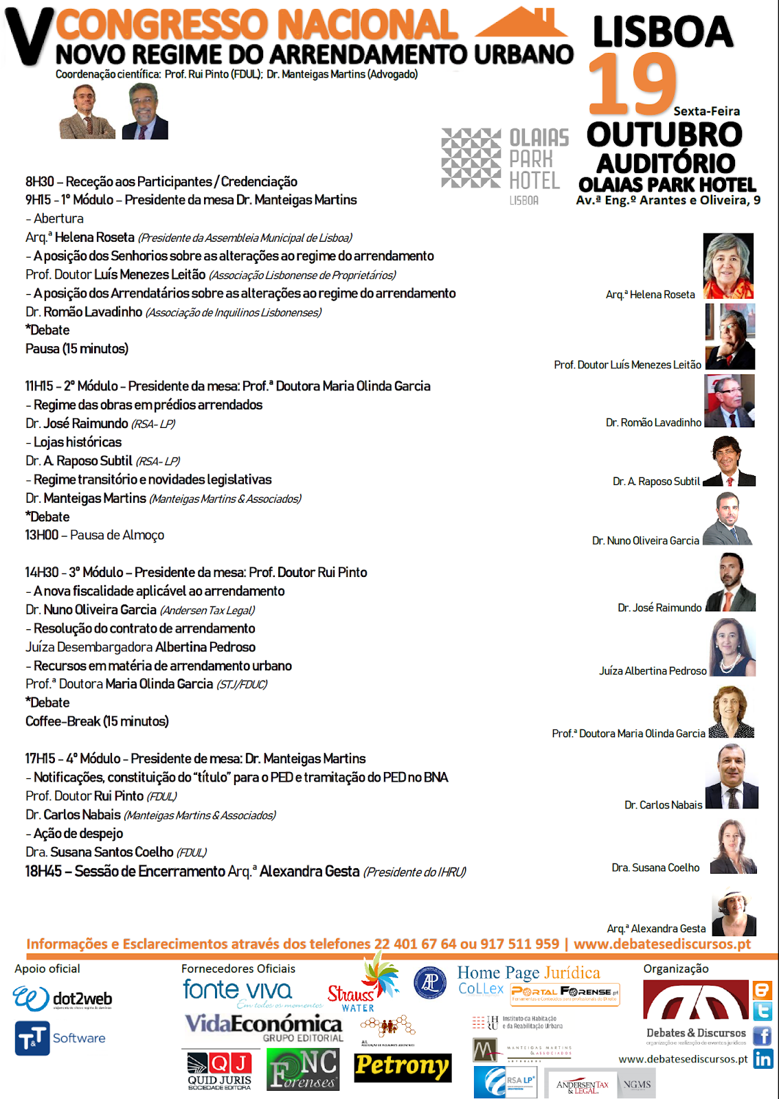 V Congresso Nacional do Novo Regime do Arrendamento Urbano (NRAU) será realizado no dia 19 de Outubro de 2018,