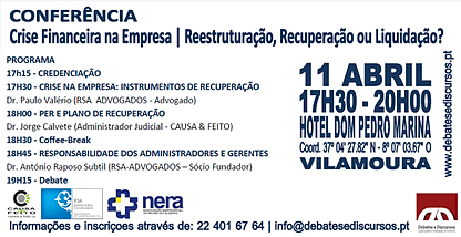 Conferência "CRISE NA EMPRESA - REESTRUTURAÇÃO, REVITALIZAÇÃO OU LIQUIDAÇÃO?" - DIA 11 ABRIL VILAMOURA - HOTEL DOM PEDRO MARINA
